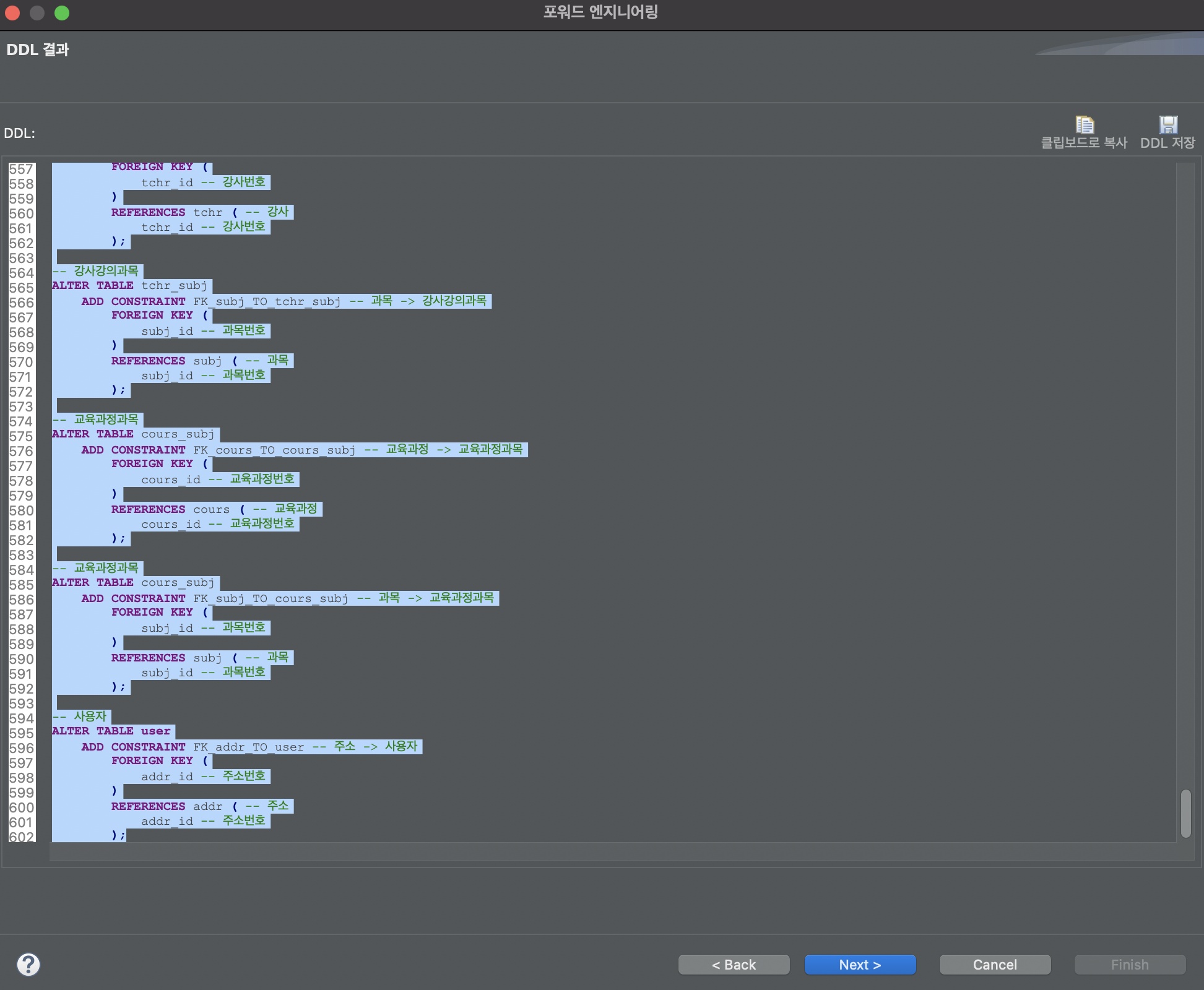 dbmodel파일 - ddl.sql 새로 만들기